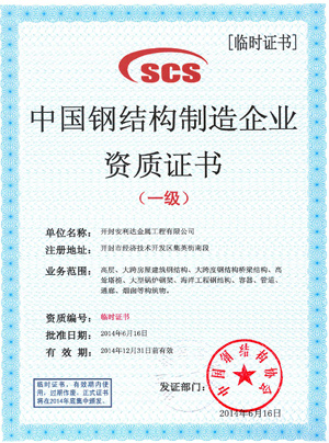 熱烈慶祝公司榮獲鋼結(jié)構(gòu)制造一級(jí)資質(zhì) |