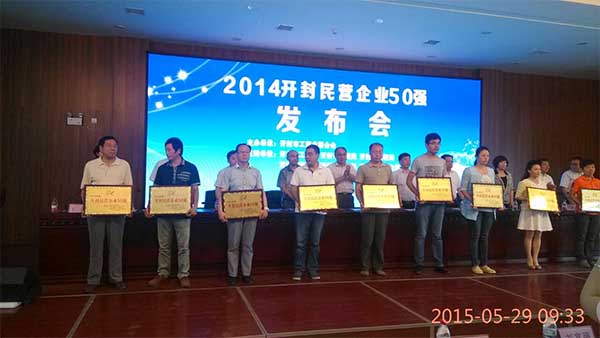 2015年5月29日,由開封市工商業(yè)聯(lián)合會(huì)主辦的2014開封民營(yíng)企業(yè)50強(qiáng)發(fā)布會(huì)在開封日?qǐng)?bào)大廈隆重舉行。